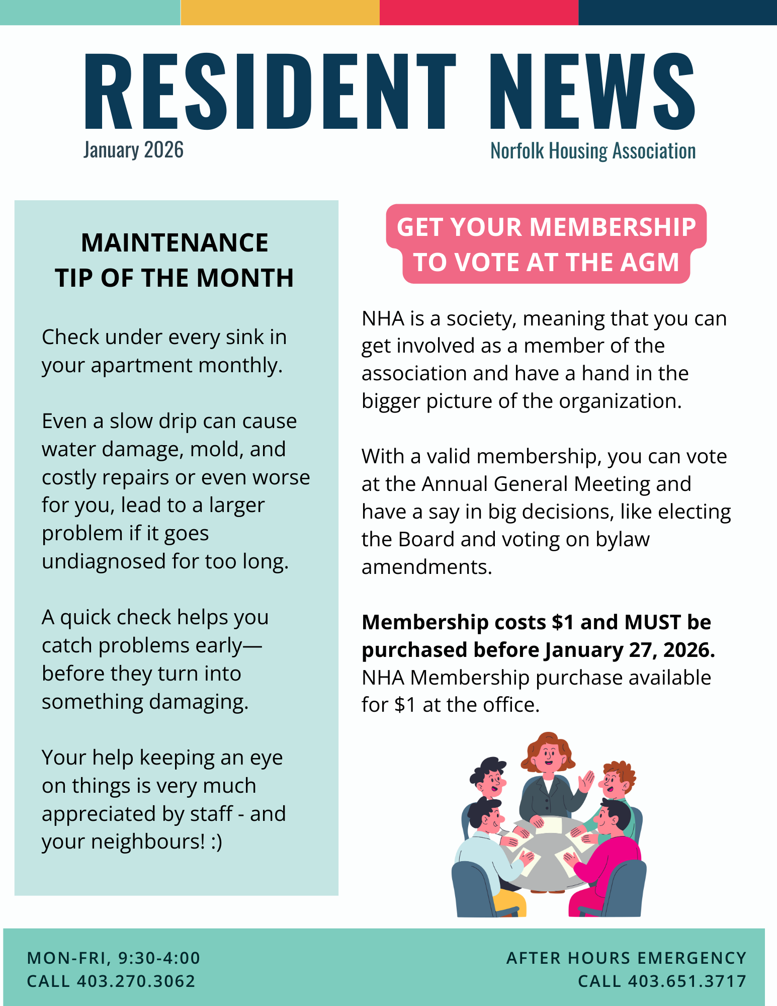 Stay up to date on NHA happenings, local events, reminders, and community resources with our monthly newsletter created just for residents :)